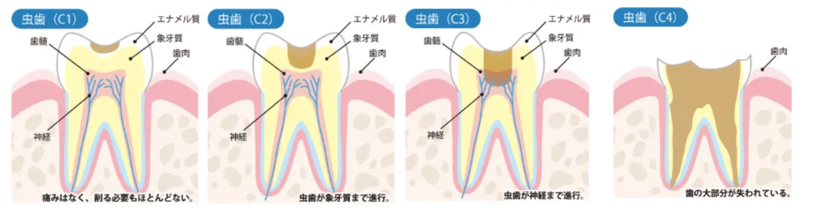 虫歯の進行度は、COからC4で表示されますが、進行度によって対処法が変わります。