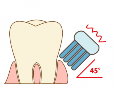 歯と歯茎の境目に、歯ブラシを歯茎に対して45度の角度で当て、丁寧に動かします。歯茎へのマッサージ効果や、歯周病予防にも効果的です。