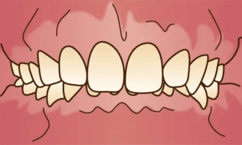 下の歯列が上の歯列によってすり減らされ、歯を菌から守っているエナメル質が摩耗。結果的に歯周病や虫歯のリスクを倍増させ、歯の欠損にもつながる可能性も考えられます。