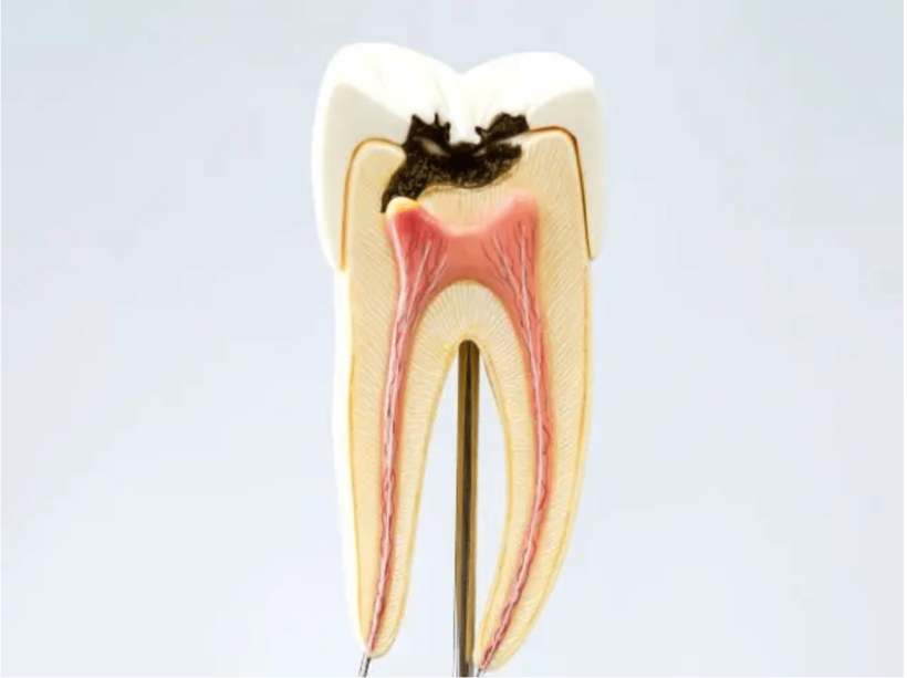 菌が歯に付着し歯の表面にあるエナメル質を溶かしていく状態。悪化すると歯の神経や歯根にまで達することも。
