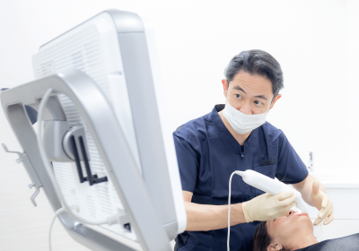 当院ではマウスピース型カスタムメイド矯正歯科装置(製品名インビザライン 完成物薬機法対象外)専用口腔内スキャナーを利用して、患者様の歯並びについて簡単なシミュレーションを作成し、治療後の歯並びのイメージをご覧いただいております。