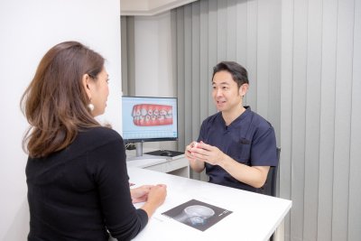 初診カウンセリングでは、まずは患者様のご要望についてお話を伺い、その後矯正歯科医があなたのお口の状態を確認した上で、治療期間、費用などについても具体的に詳しくご説明いたします。「矯正治療を考え始めたばかりで知識があまりない」という方も、一つずつ丁寧にご説明いたしますのでご安心ください。