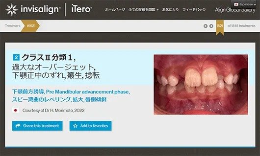世界中の矯正医たちが優れた症例を共有し、お互いの知識を深めるためのプラットフォーム。数多くの症例が寄せられる中で、選ばれた症例のみが公開されている。